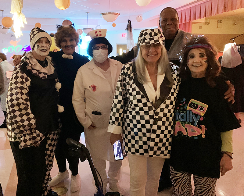 Our annual Halloween party was an exceptional one this year. A large donation of Halloween décor enlivened the Auditorium and set the tone for a fun night. Joined by our volunteers young and old, the Residents had a ball dancing to the D.J.’s well chosen music.